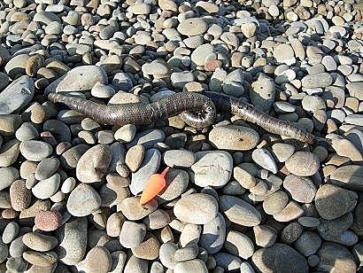 長度超過1M..............還第一次看見那麼大隻的海蛇種類為何?小弟也不懂!
